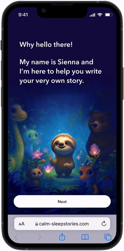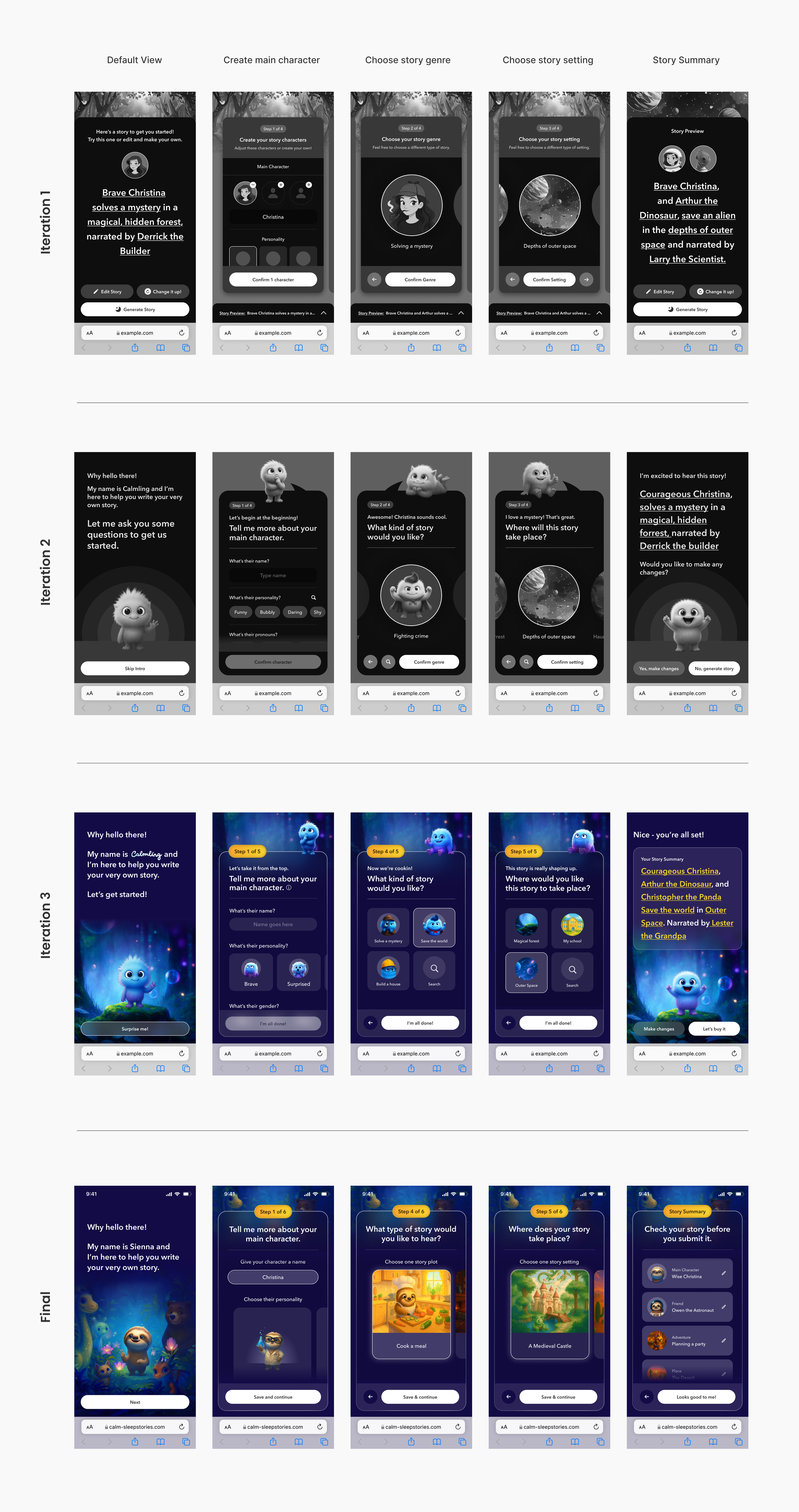 An interactive, 0 to 1 web-based sleep story creation experience that allows kids to construct their own personalized sleep story