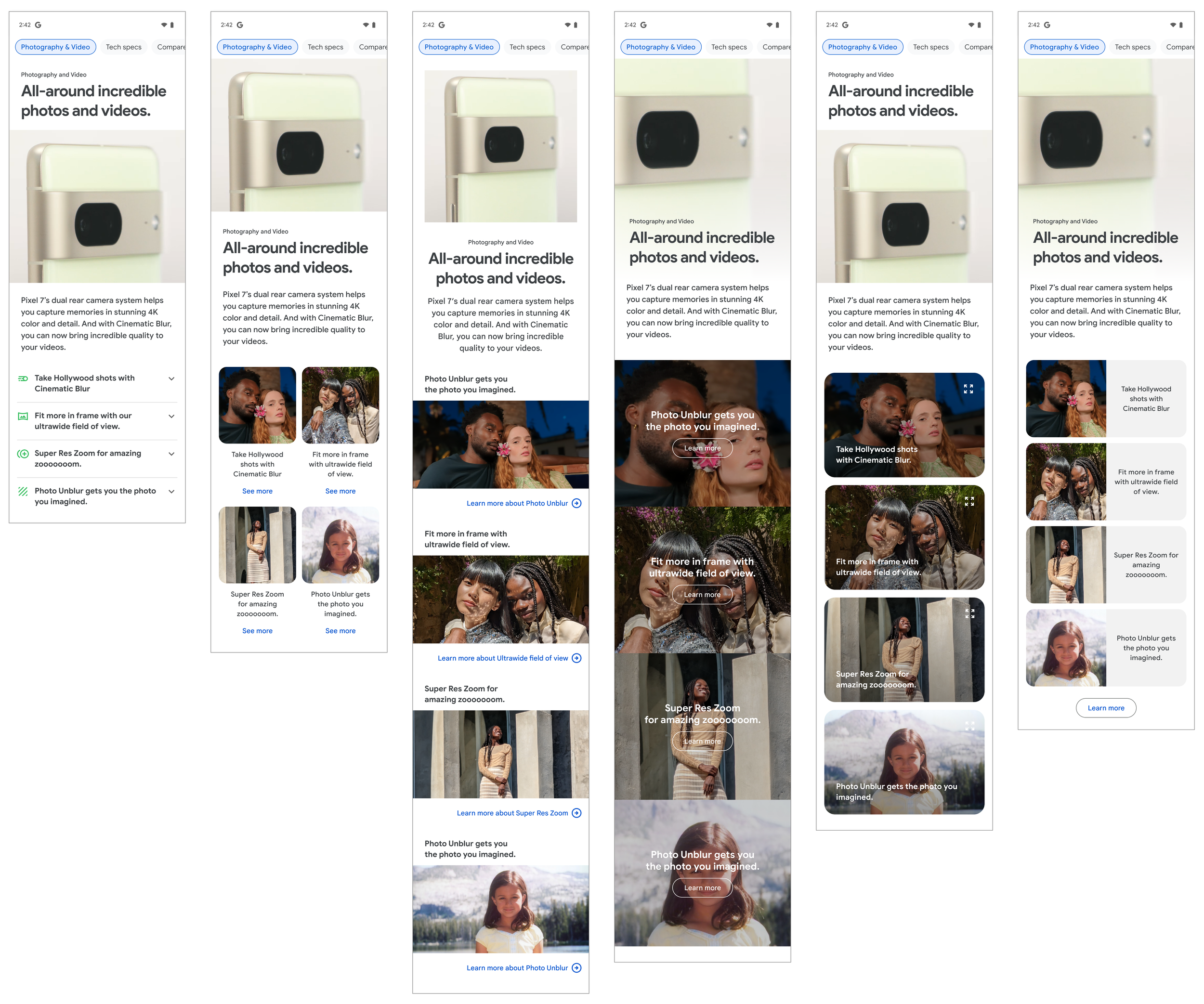 I was asked to design the second version of the KSP module, the primary content used to educate users about product features on Google Store Product Detail pages. The PDP acts as the source of truth for a product’s core information, and is the key user touch point for product education, consideration, and conversion. The KSP module is integral to persuading customers to move down the purchase funnel and hopefully convert.
