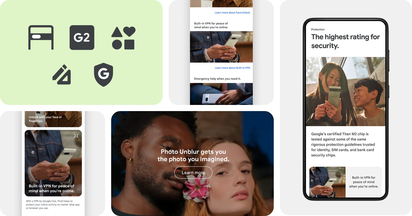 In combining different iterations of each base composition, the pages, in total, achieve a great amount of visual variation and differentiation, key objectives and requirements. Below are examples of how the same KSP content could appear, utilizing differing base compositions.